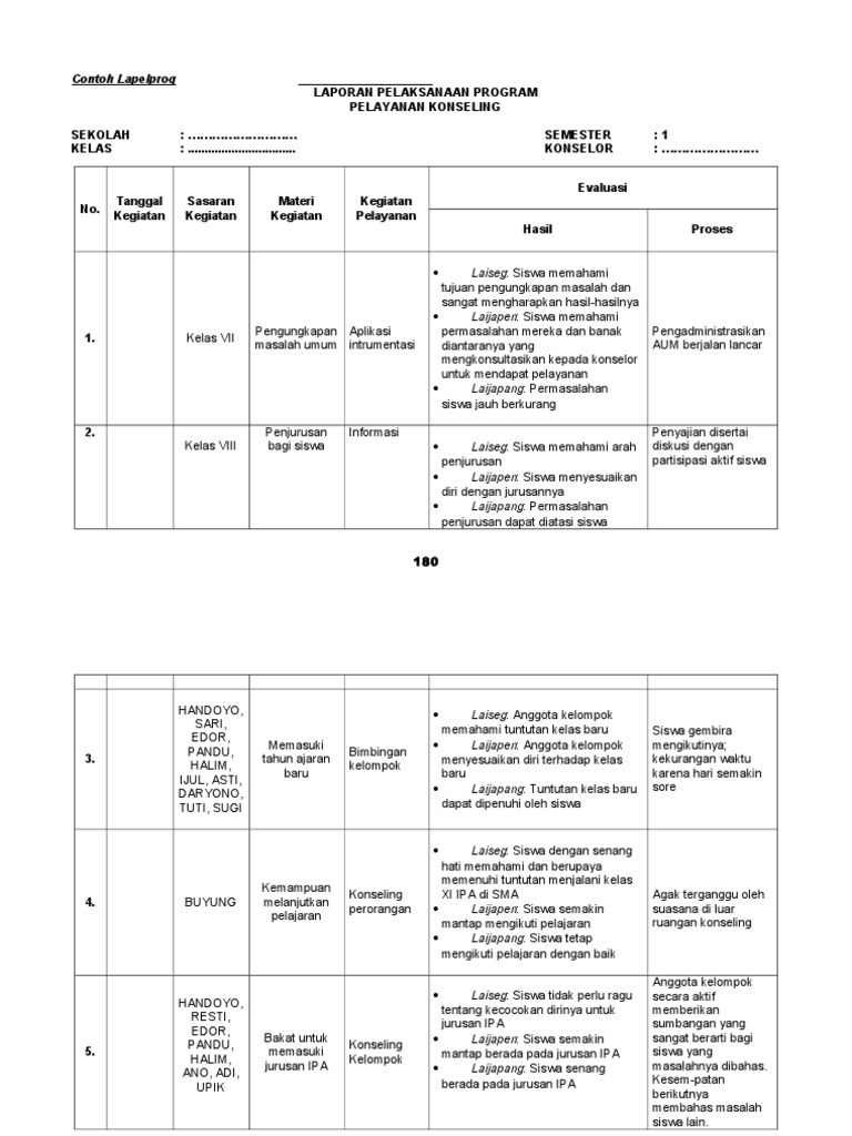Membiasakan diri mengikuti kegiatan keagamaan d. Contoh Laporan Pelaksanaan Program BK SMAMASMK Tahun 2018 ini merupakan file terbaru yang akan saya bagikan pada kesempatan kali ini. Laporan Layanan BK Kelompok Klasikal Kelas BesarLintas Kelas Skala Assesmen Layanan BK Oleh Peserta didik dan Lembar jawaban Skala assesmen peserta didik.