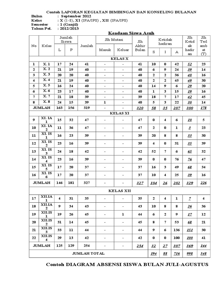 OSIS SMA Negeri 1 Prambanan sebagai salah satu organisasi intrakurikuler dalam sebuah lembaga formal mewadahi seluruh kreativitas siswa yang tersebar dalam berbagai jenis ekstrakurikuler berkewajiban membantu dan membina kelangsungan hidup organisasi-organisasi yang berada di bawahnya. UTN SMP BIMBINGAN KONSELING BK Contoh Dan Format Bimbingan Konseling SMP MTS. Format laporan bulanan MA.