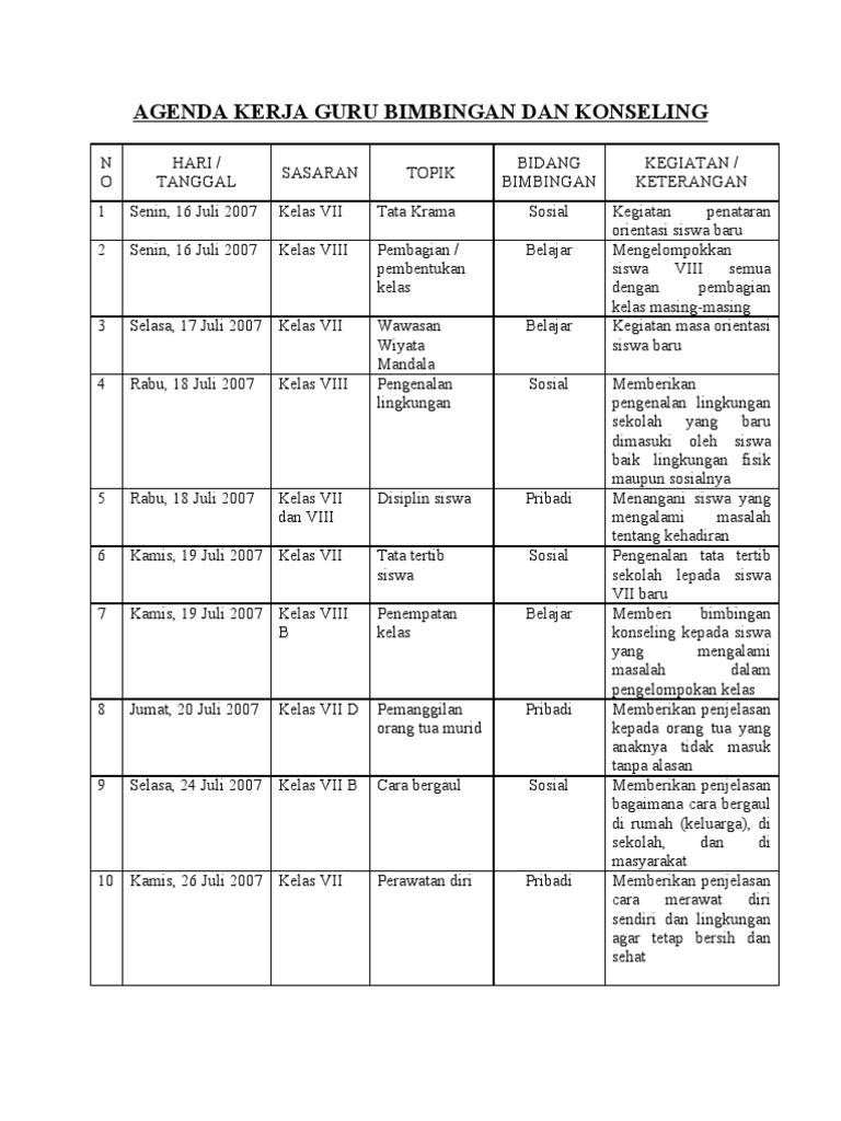 Agenda Kerja Guru Bimbingan Dan Konseling