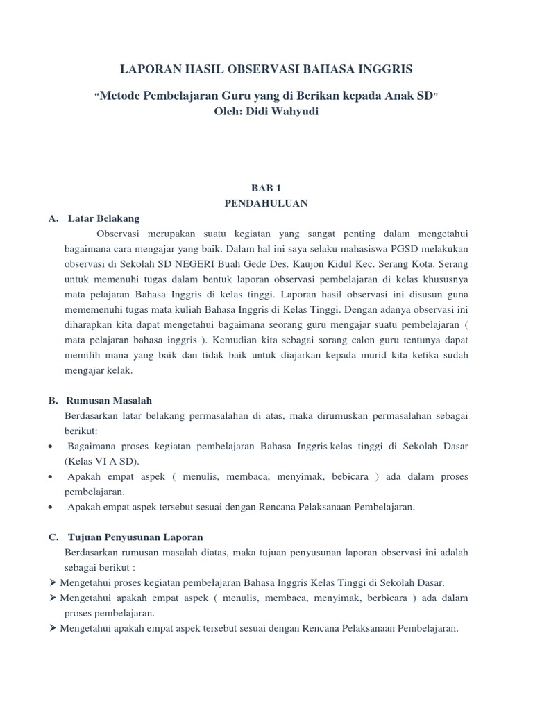 Contoh Laporan Penelitian Dalam Bahasa Inggris Kumpulan Contoh Laporan