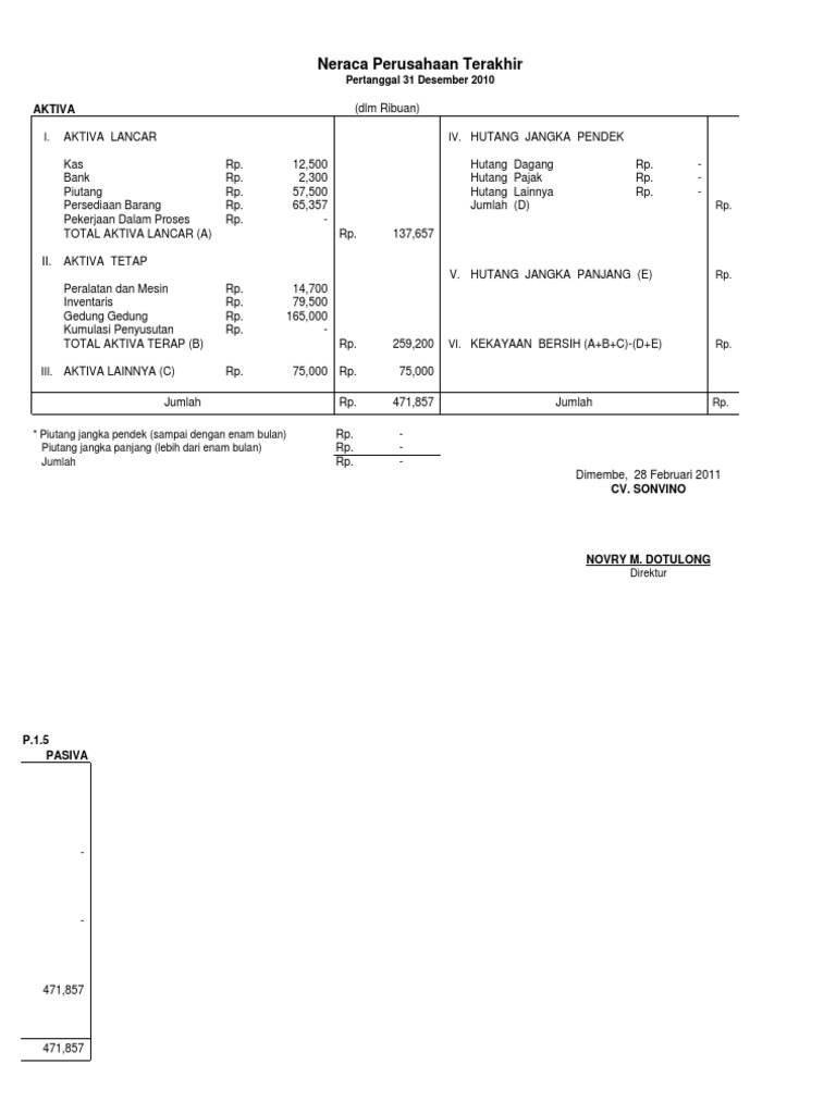 Contoh Neraca Keuangan Tahunan Cv Surat R